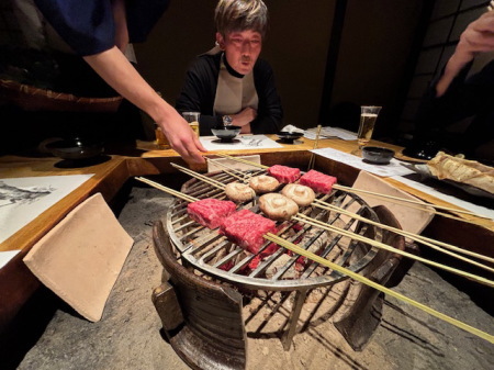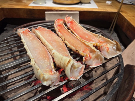 炭火の上でゆっくり焼かれる蟹。