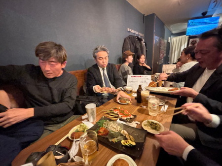 皆さん、たらふく飲んで食べて満足したようです。