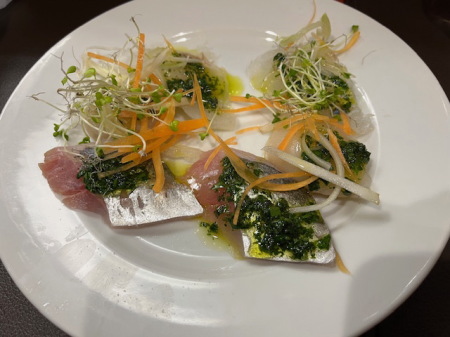 アジ・ヒラメ・ホタテのカルパッチョ(1,400円)